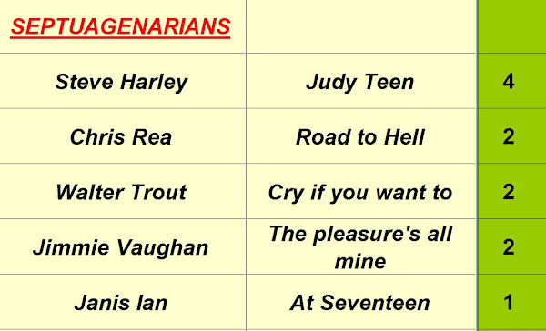 Theme 4 was LETTERMAN LIVE. Six tracks again and 2 votes each produced the following results: